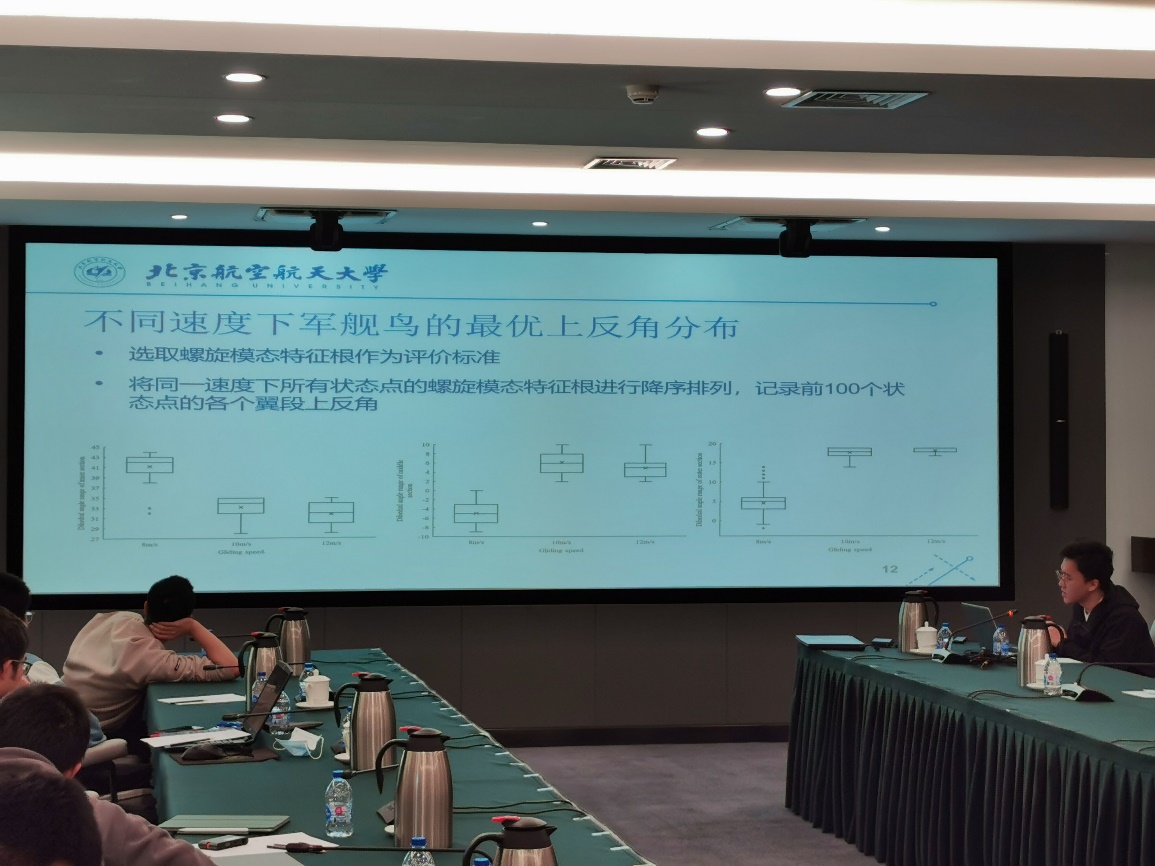 两位老师的分享过后,来自各课题组的10位博士生分别分享了他们的研究方法或成果,王祥胜同学分享的《倾转旋翼飞行器总体设计》、卫晨豪同学分享的《翼面上反角分布对滑翔鸟类横航向动稳定性的影响》、尚彬彬同学分享的《无人机自动识别起降》更是让人印象深刻。虽然每位同学的研究方向不尽相同,但都对飞行器总体设计有着自己独到的见解,为在座的同学们拓宽了视野、开阔了思路。