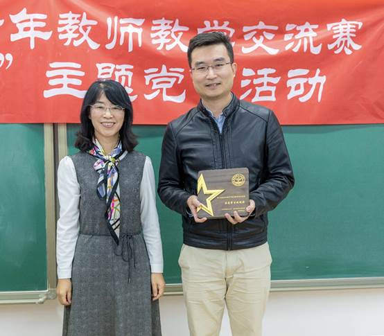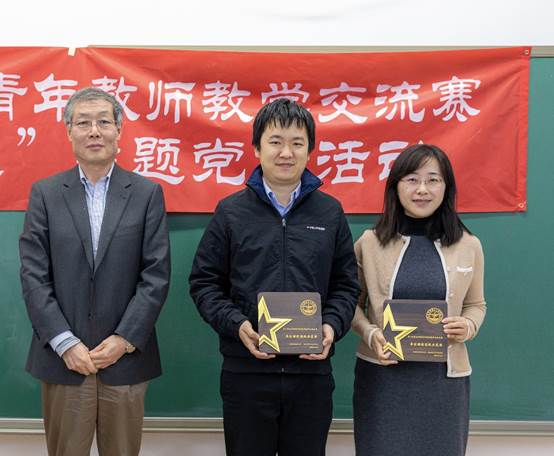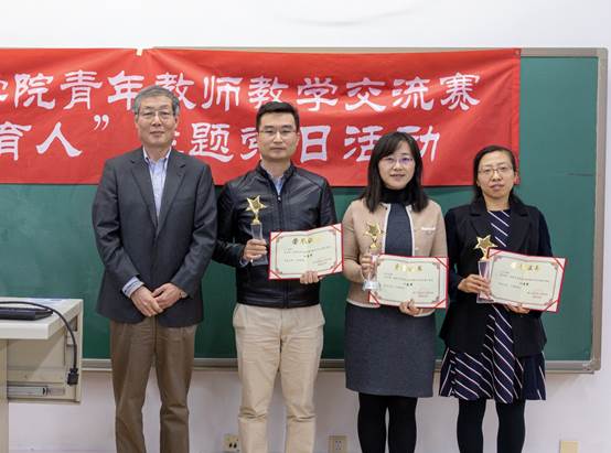 图10 2019年“立德树人卓越奖”获得者贾玉红老师为获得二等奖的3位青年教师:高振勋、郝宇清、宋磊颁奖。