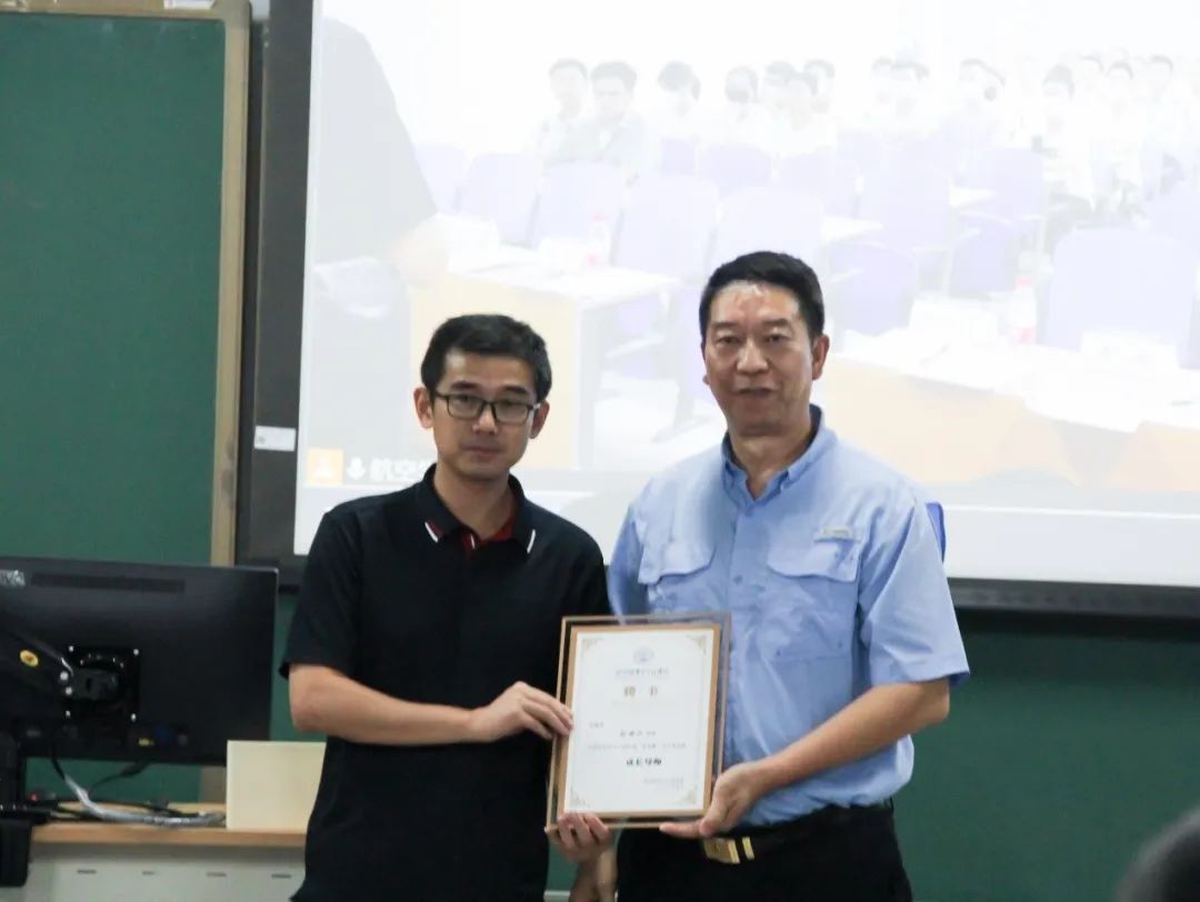 双学籍飞行学员班成长导师刘世江向新学员致辞。刘世江,中国航空救援协会(筹)秘书长,他从个人的成长经历出发,分享了自己的学习和成长经历。他分享了自己对于“加与持”“自我、本我和超我”的看法,希望同学们在成长过程中应该注重知识的主动摄取而不是被动吸收,旨在激励同学们在未来更加努力,培养大局观,令同学们感触颇深、受益颇多。