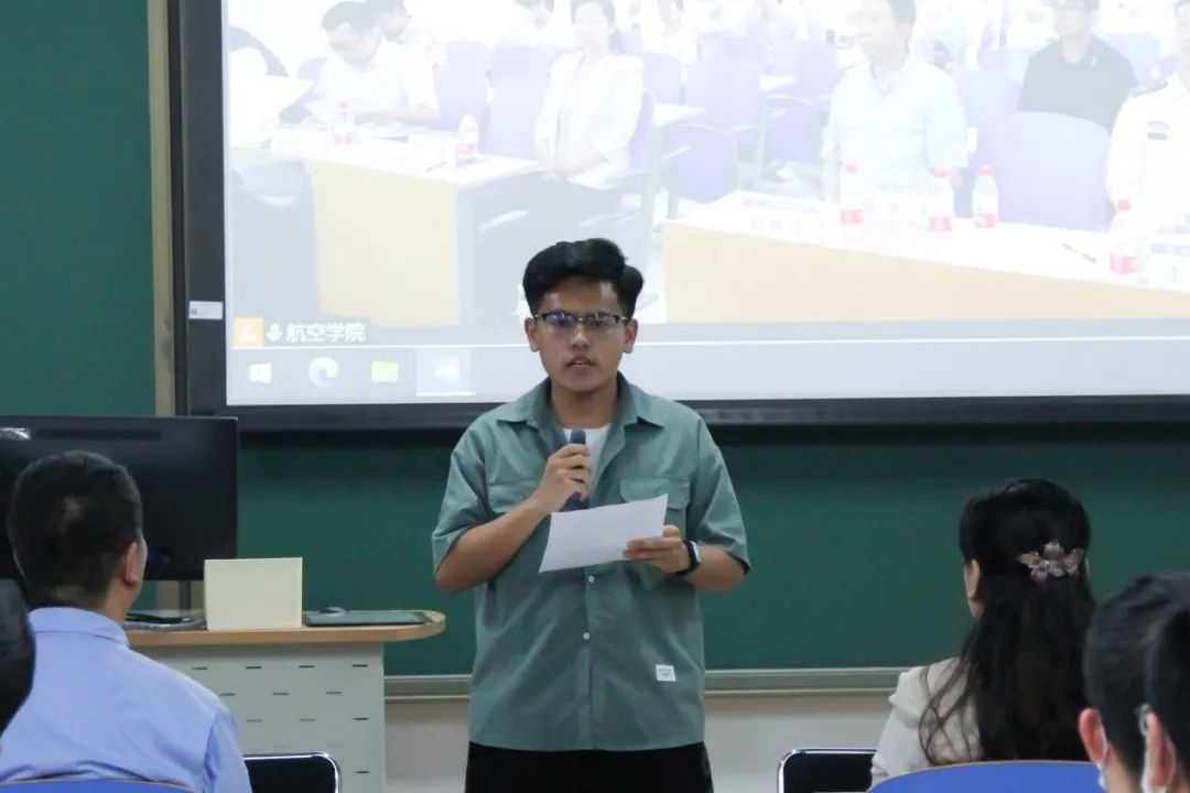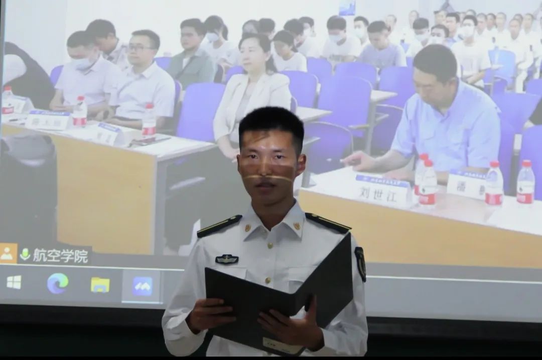 19级陆士嘉班学长张恒德、李博程和20级双学籍飞行学员班学生代表于浩、戴鸣柯向大家分享了自己在博彩导航