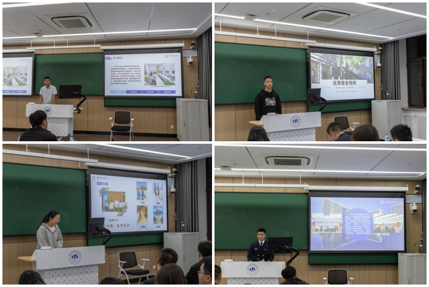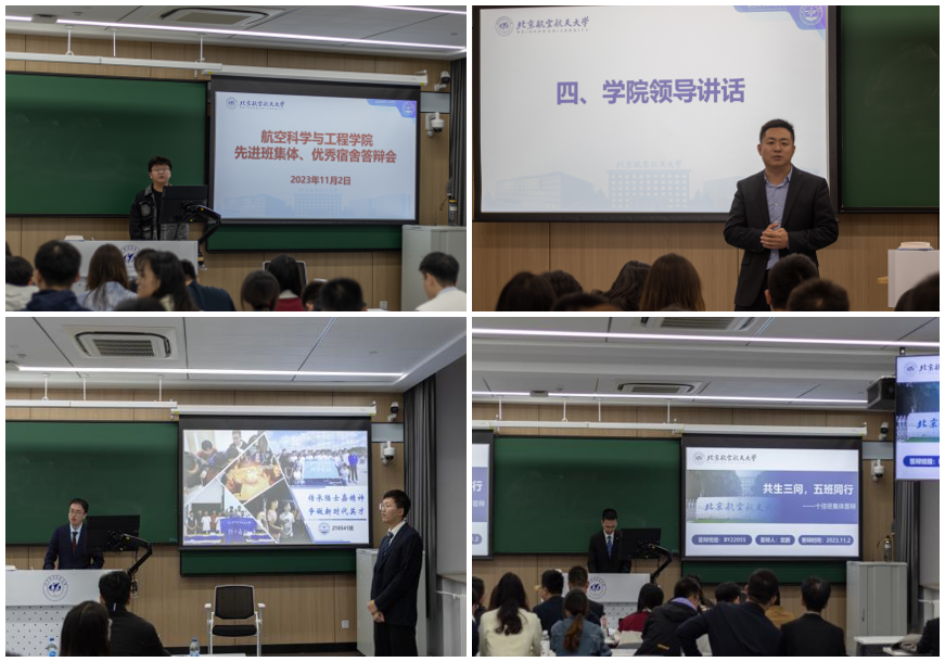 先进班集体答辩共收到申报材料13份,来自不同年级的本研优秀班级分享着他们的集体故事。各位答辩人从不同角度展现了班集体的风采。他们中有发扬“挂钩帮带”精神、锐意进取的210510双学籍飞行员班,也有怀抱空天梦想、一心向党的210541班,还有献身科研一线、服务国家需求的BY21052小班,或者是学习成绩、思想修养、科研精神俱佳的其余本研优秀班级,都让评委和同学们印象深刻。
