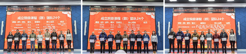 进行了2023年度教育教学表彰仪式。对在课程教材、教学成果、教学改革与平台建设、教师发展、学生培养等方面获得奖项的79个获奖团队和教师进行表彰,并为通过校级一流本科课程认证的7门课程、24个院级课程(群)教学团队颁发证书。