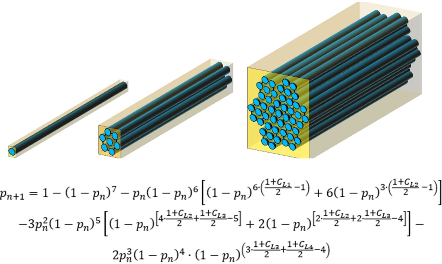 纵向拉伸破坏是纤维增强复合材料最关键的失效模式,然而基于现有的强度理论精确预测复合材料的失效强度和损伤演化仍然面临较大挑战。一方面,现有主流复合材料强度准则多采用纤维的确定性强度(比如平均强度)作为失效判断的重要参量,而忽视了纤维强度分散性以及纤维/基体界面剪切强度的影响;另一方面,纤维束中局部纤维的失效会显著影响邻域内纤维上的载荷分布,从而导致纤维束内部损伤扩展,最终导致纤维束失效,并表现为典型的多尺度损伤,这些物理现象在诸多宏观强度准则中都缺乏刻画。