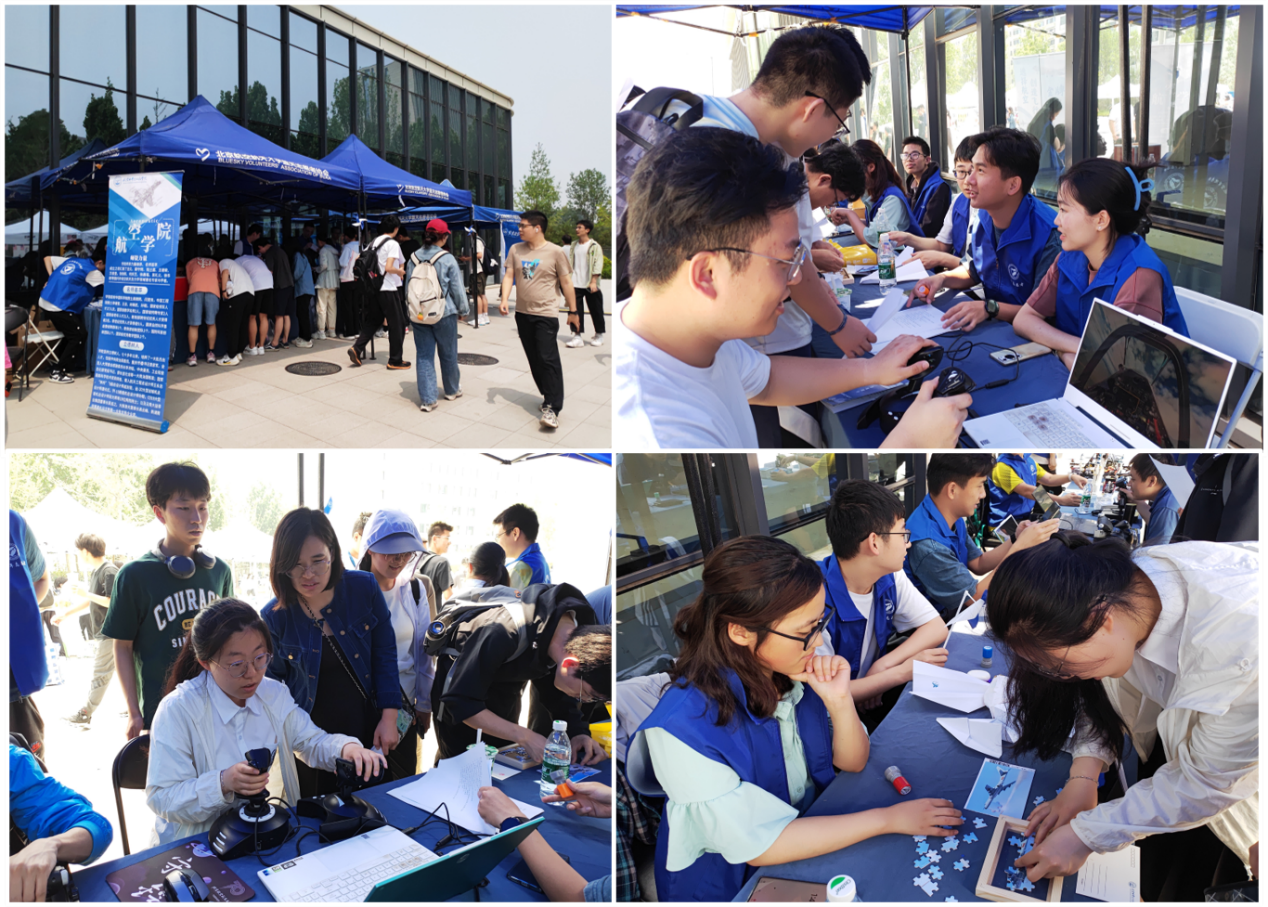 在沙河校区西区食堂南侧广场举办了以“逐梦航空”为主题的外场活动,通过模拟飞行、叩问苍穹、飞行梦想家、拼图挑战四个游戏,展现博彩导航