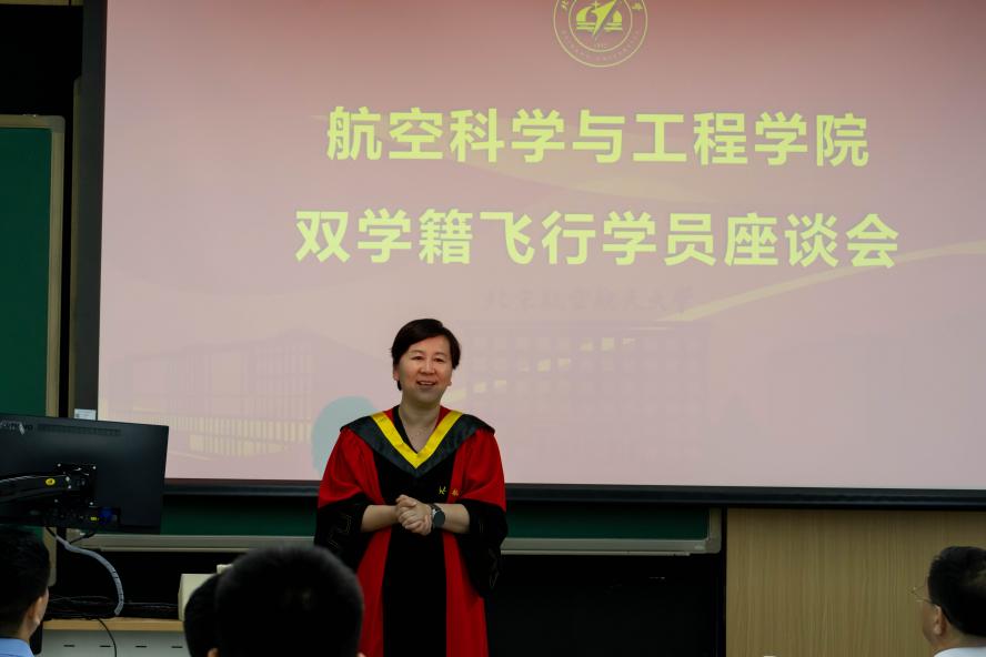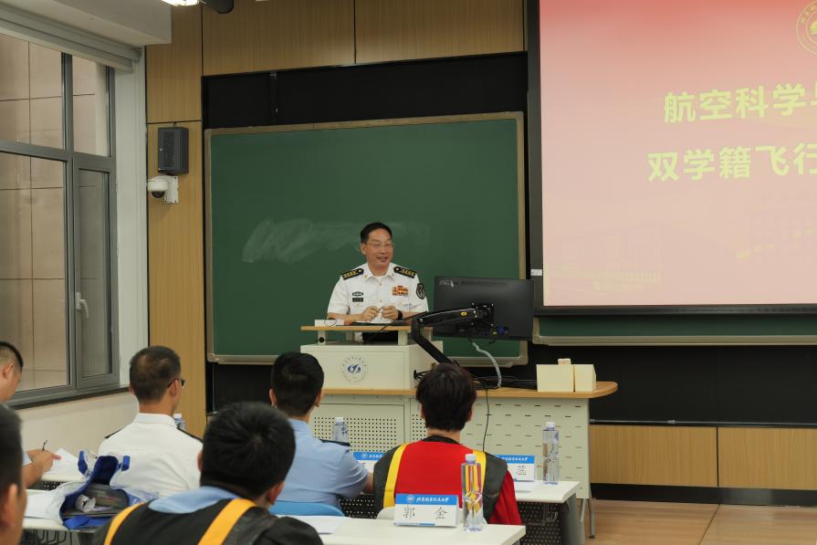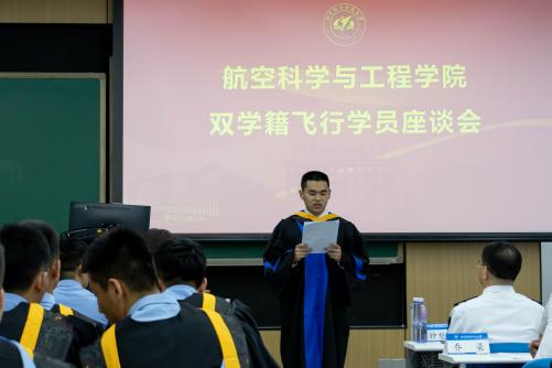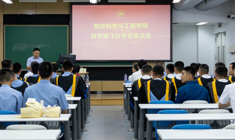 在新主楼C201教室举行2020级“双学籍”飞行学员毕业座谈会。校人力资源部部长、博彩导航