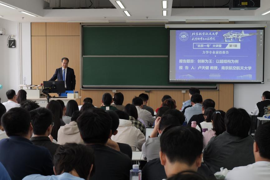 先辈“空天报国、敢为人先”的“北京一号”精神。新学期第一讲中,邀请到了南京航空航天大学卢天健教授、航天五院总体部苗建印研究员主讲。