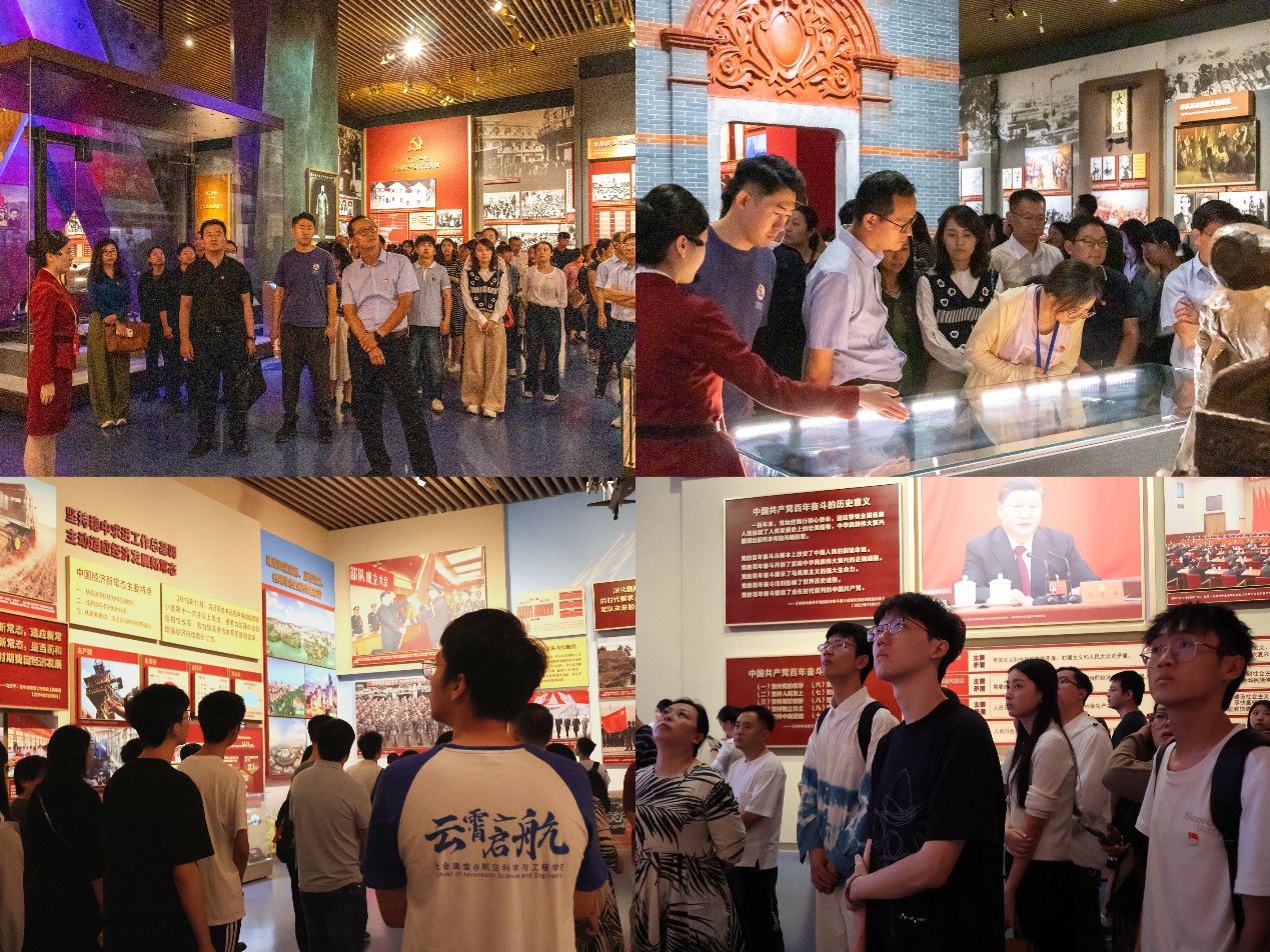 的老师和同学们徐步向前,详细了解每一件展品背后的故事,认真体会蕴含其中的厚重历史,在重温中国共产党百年探索和建设的历史足迹中,深刻领悟中国共产党为中国人民谋幸福、为中华民族谋复兴的初心使命。