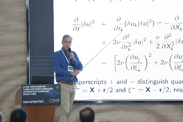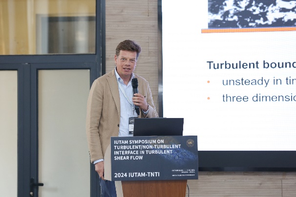 研讨会于2024年10月9日上午开幕,会议共同主席Ivan Marusic院士代表会议主席王晋军教授及会议科学委员会首先致开幕词,他向到场来自不同国家的专家学者表示热烈欢迎,期待本次会议能为TNTI领域的全球科学家们交流搭建平台,为推动该领域的发展发挥积极作用,并向IUTAM、博彩导航