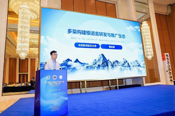 鲁金直副教授作《多架构建模语言研发与推广生态》为名的大会主题报告。报告中介绍了多架构建模语言KARMA的发展历程及生态推广与应用情况。相关专家报告引起了与会者高度关注和热烈讨论。