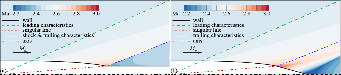 图2两种不同构型下超声速绕流形成的锥形膨胀解