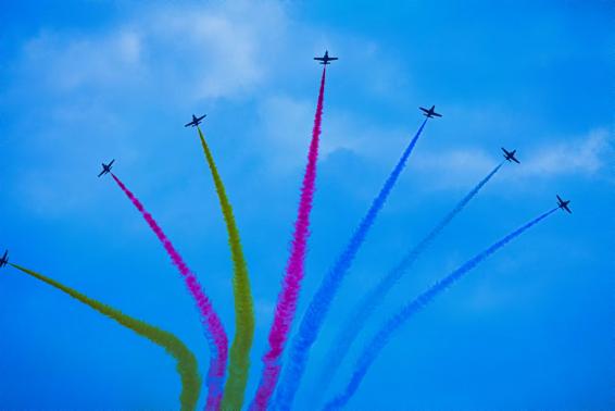 在航展飞行表演中,歼-35A、歼-20、歼-15T、运油-20等全明星阵容依次登场,在撕裂长空的呼啸声中各式飞机的“空中芭蕾”给博彩导航