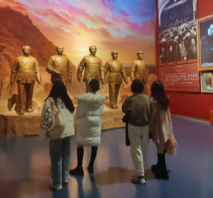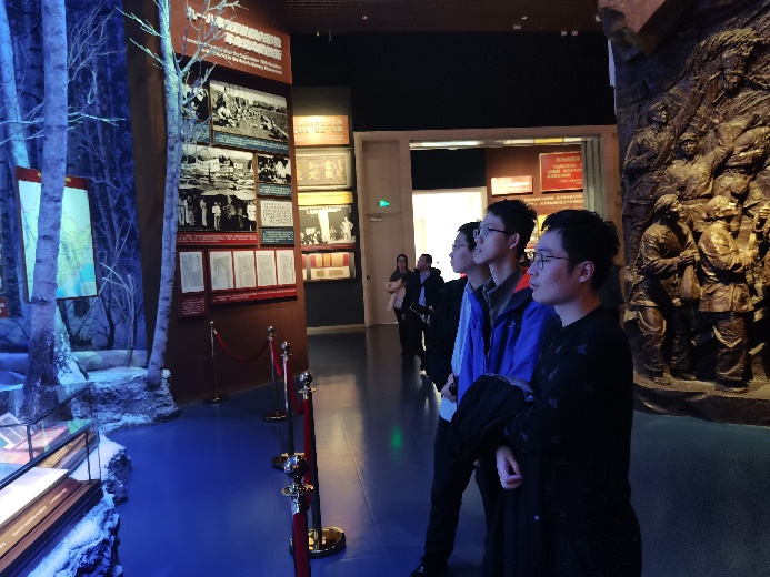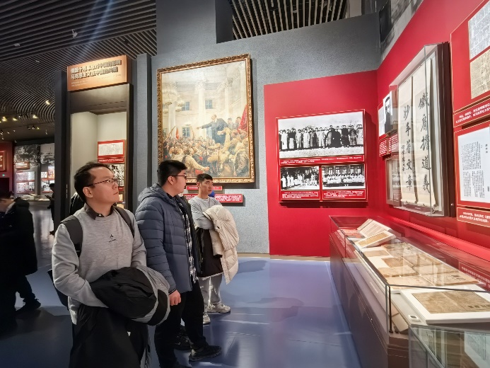 继续前行,走到新中国升起的第一面五星红旗处,听着《东方红》的旋律,支部成员们在录像中看到了共和国成立时的珍贵影像,此时,众人的思绪仿佛回到了那个红旗飘扬的年代。在一件件珍贵的展品前,支部成员们切实地体会到了社会主义革命与建设的巨大成就。