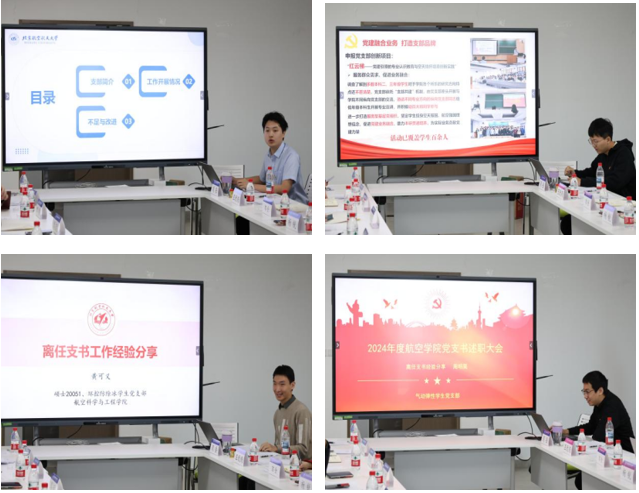 党建和思想政治工作基本标准》,就支部班子建设、组织生活开展和特色党建活动等方面,依次进行年度工作述职汇报及评优答辩。与会同志围绕支部工作细节、创新做法可行性等问题进行提问交流。随后,2位近期离任优秀支书代表从支部日常管理、党员培养、党建活动策划与执行等方面,分享任期内积累的工作心得和宝贵经验。