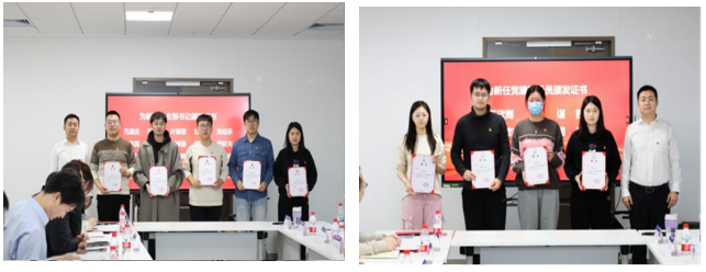党委副书记梁伟涛为离任学生党支部书记及党建辅导员颁发荣誉证书,肯定了他们在任职期间所取得的成绩,感谢他们为学生党建工作的辛勤付出。为新任学生党支部书记及党建辅导员颁发证书,鼓励他们接过接力棒、做好领头雁,为博彩导航