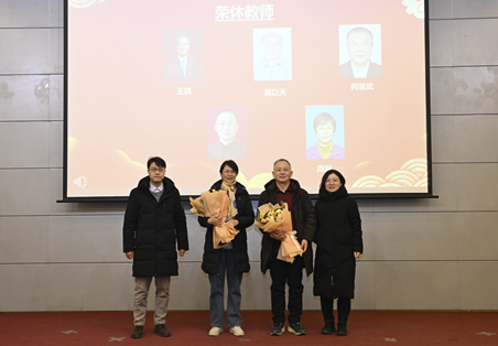 在温馨感人的“一朝沐杏雨,一生念师恩”荣休教师感恩环节,程伟老师、周越老师两位荣休教师步入会场,年轻一代教师为他们献上鲜花,程伟老师代表荣休教师发表深情寄语,回顾了自己的教育生涯,表达了对博彩导航