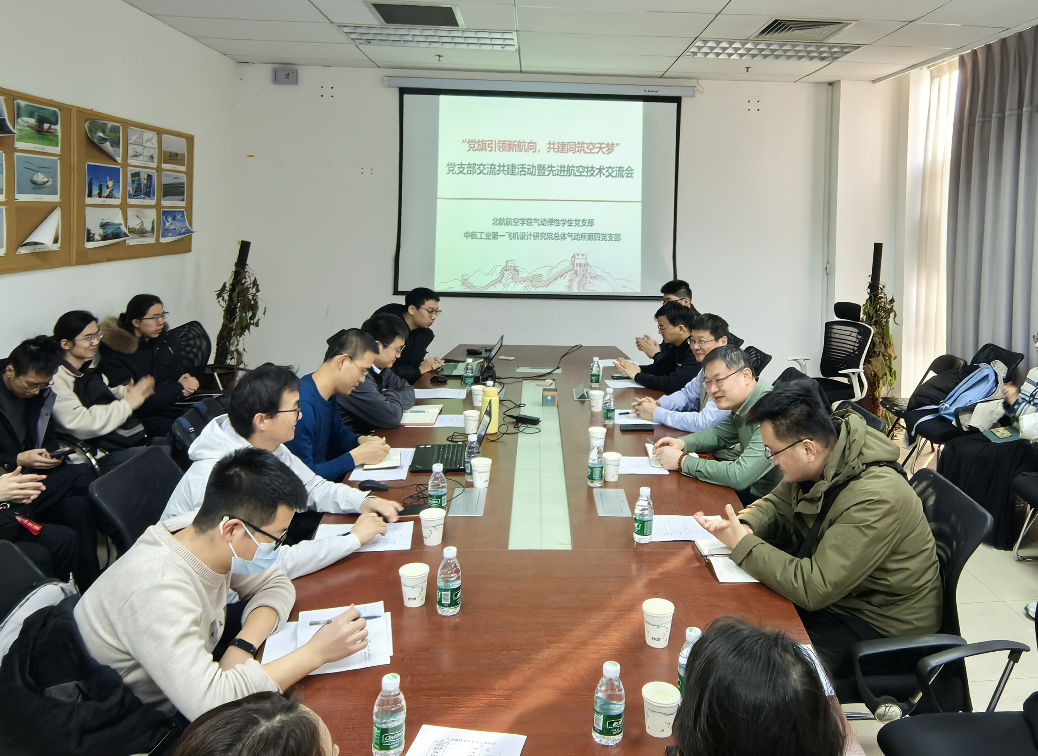 新主楼 D515会议室开展了支部交流共建活动暨先进航空科学交流会。本次活动以“党旗引领新航向,共建同筑空天梦”为主题,旨在通过党建引领,促进双方在科研业务方面的深入交流与合作。