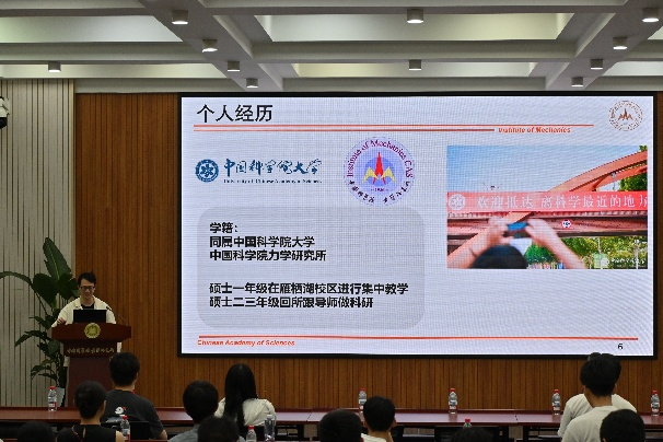 当日15:30,全体人员齐聚力学所主楼礼堂,由力学所研究生第二支部书记张彭豪主持开展以“党建+科研”为主题的交流活动。活动伊始,大家共同观看宣传片,系统了解力学所的科研布局与党建特色。随后,力学所党支部党员代表徐玮伦分享了在科研道路上以党建为引领、攻克技术难题、实现自我成长的亲身经历,强调“科研攻关需要理想信念支撑,党建为科研提供方向与动力”。