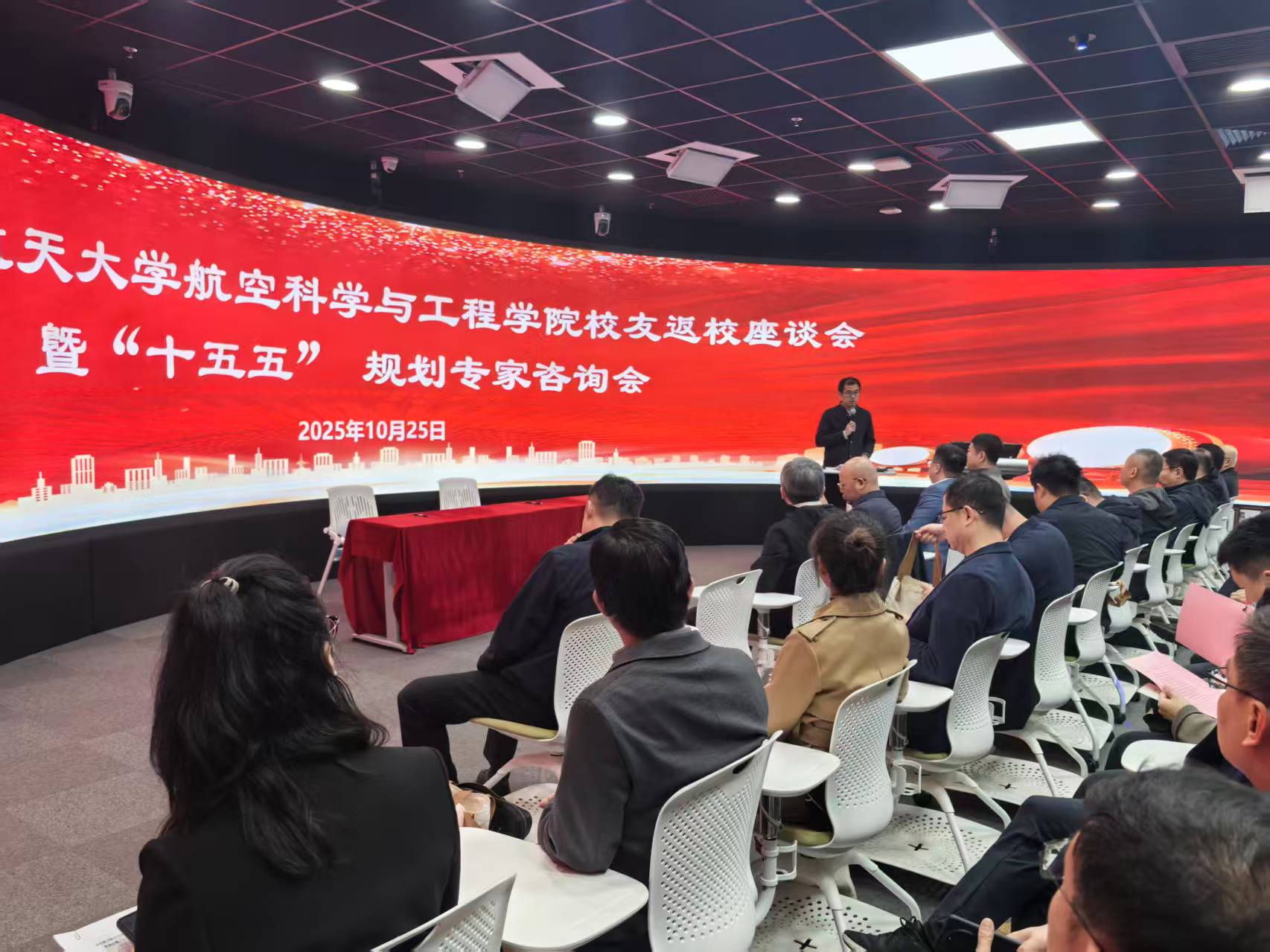 沙河校区科研2号楼107智慧教室召开校友返校座谈会暨“十五五”规划专家咨询会。本次会议以“凝聚校友力量、深化校企合作、擘画‘十五五’新局”为主题,包含校企合作协议互换、“航空之友”奖学金颁发、企业导师聘用、“十五五”规划研讨等内容。
