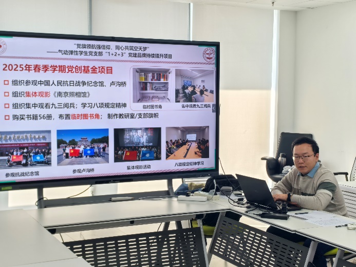 支部书记晁鹏辉代表支委会向支部党员与老师汇报上一学年工作情况。过去一年内,气动弹性学生党支部严格落实“三会一课”制度,组织有条理,工作有成效,打造了校企共建、党史馆参观、抗战纪念馆参观、红色观影等一批颇有意义的党建活动;全学年开展党员大会4次,主题党课及学习日活动9次,集中学习2次;连续获批2024年秋季学期及2025年春季学期校院两级党创基金项目;支部荣获2024年博彩导航