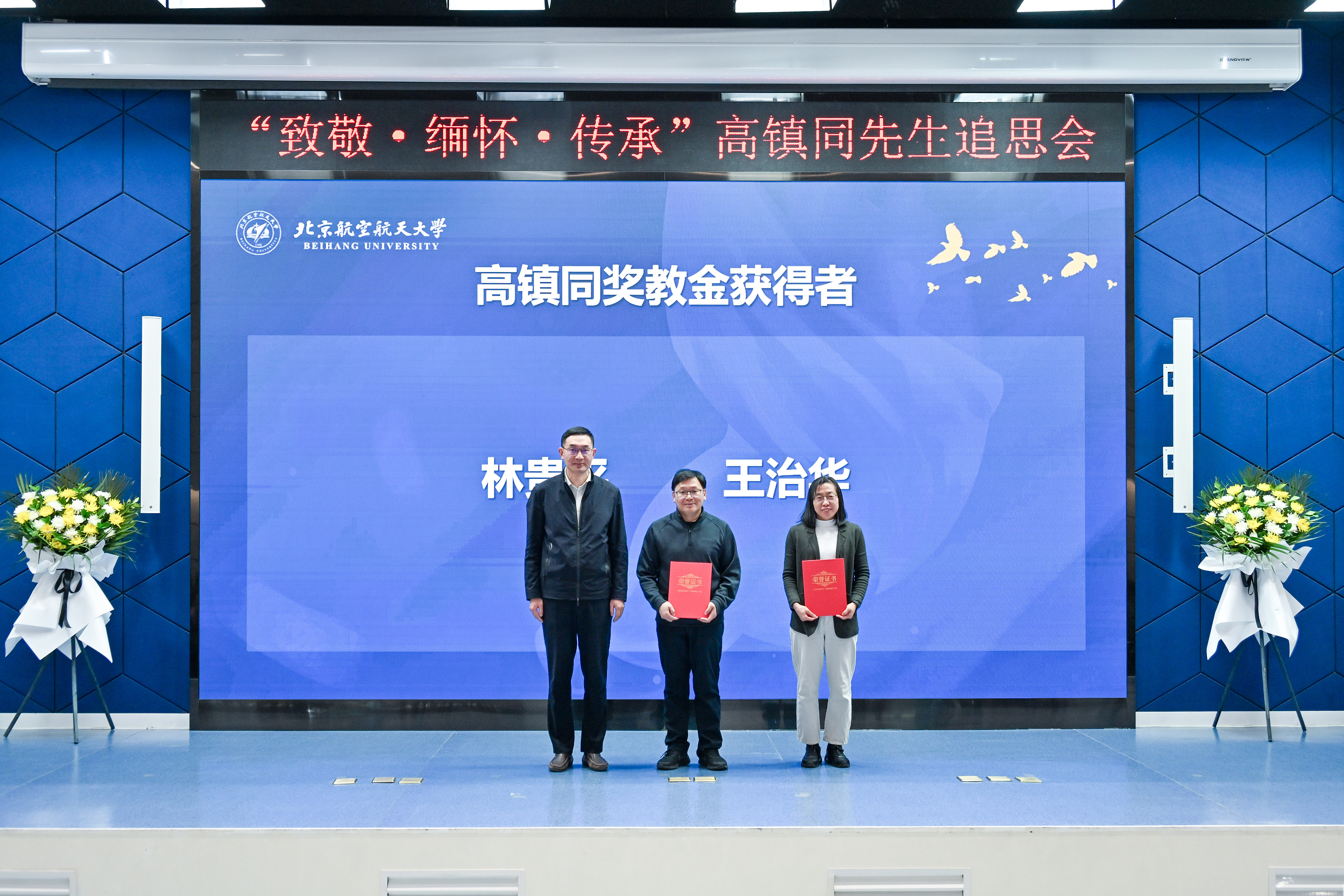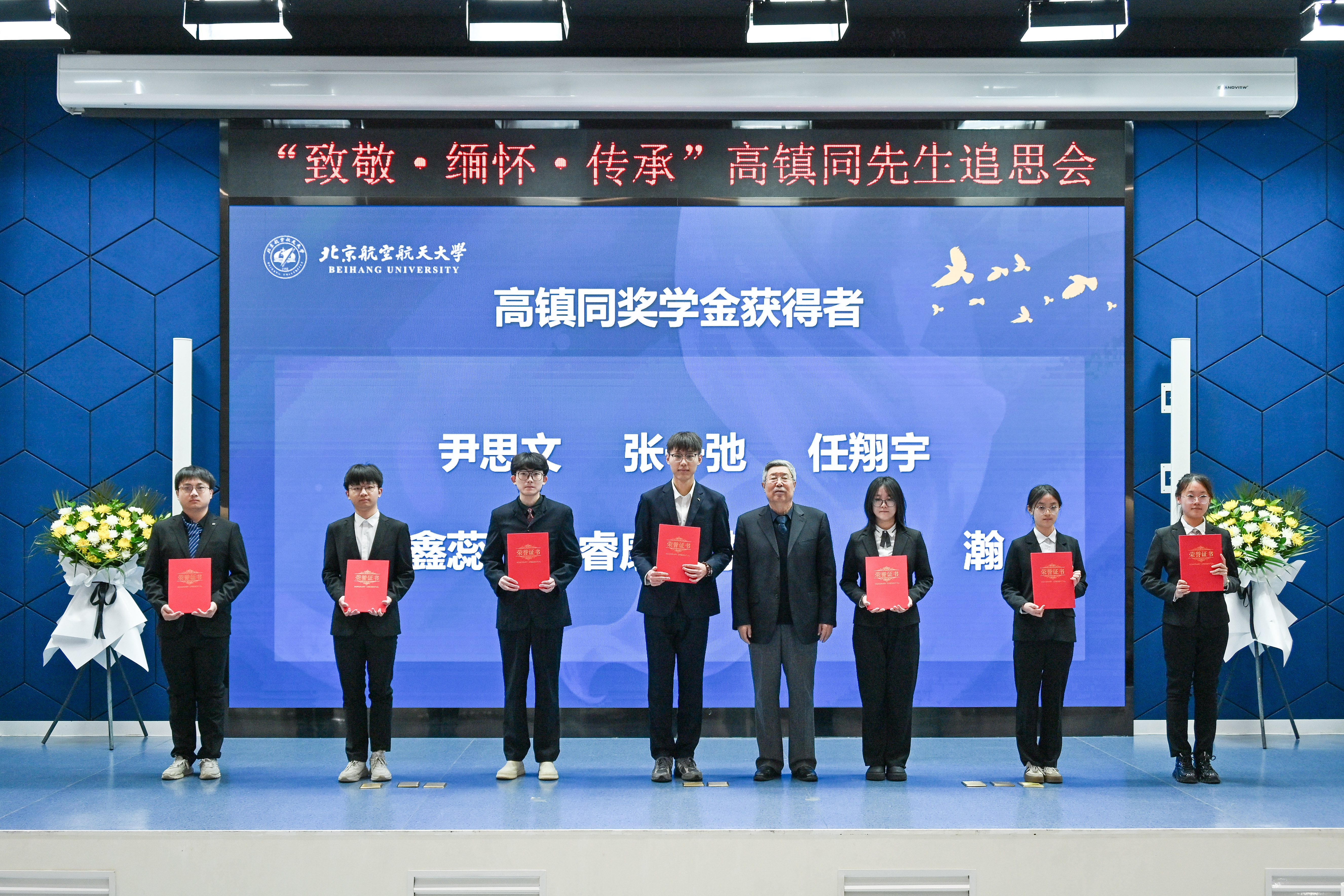 教育基金会秘书长签署捐赠协议。程波为高镇同奖教金获奖教师颁奖,闫楚良为高镇同奖学金获奖学生颁奖。奖教金获得者代表、奖学金获得者代表先后发言,他们表示,将以高镇同先生为榜样,秉承“爱国、创新、求实、奉献、协同、育人”的科学家精神,不断在航空强国的道路上坚定前行,再立新功。