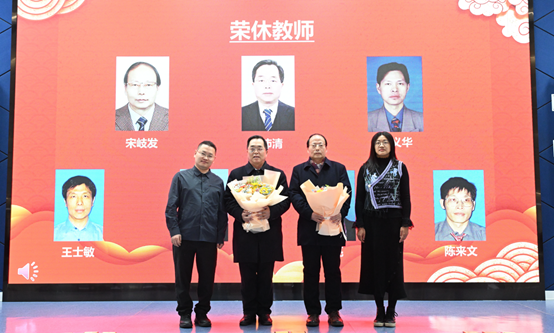 为刘沛清、宋岐发两位荣休教师献上鲜花,致敬其多年深耕教学、潜心育人的奉献精神。刘沛清代表荣休教师深情寄语,回顾从教历程,寄语青年教师接续奋斗、传承薪火,现场氛围温馨而厚重,生动展现了博彩导航