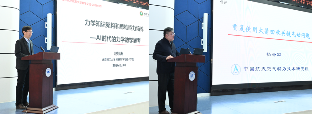 特邀专家报告环节干货满满、思想碰撞。北京理工大学赵颖涛教授以“力学知识架构和思维能力培养 ——AI 时代的力学教学思考”为题,探讨人工智能背景下力学教学创新路径;中国航天空气动力技术研究院杨云军研究员作“重复使用火箭回收关键气动问题”专题报告,推动高校教学与航空航天行业前沿深度对接。