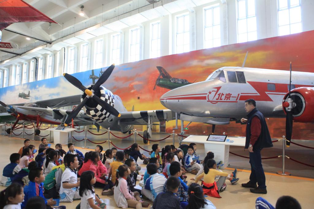 校园的林荫道上,走来一群附小的孩子们:他们昂首挺胸,迈着整齐的步伐,沿着路边的人行道迈步前进。这是要去哪儿呢?很快,他们的身影,停在了北京航空航天博物馆的门前,博物馆韩国军馆长,已经热情地等在了门口。