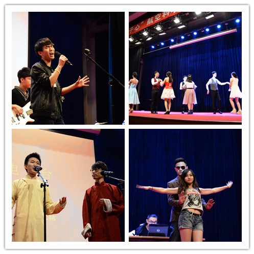 在表彰优秀个人和集体的同时,新年晚会各个节目接连上演。歌曲、舞蹈、小品、相声、T-show精彩纷呈。晚会第一部分,由四人合唱歌曲《当我们一起走过》,将观众的情感连接到了一起,钢琴大提琴演奏《Linbertanggo》旋律优美,独唱《小小》展现航院女生风采、相声《学电台》另所有观众捧腹大笑、交际舞《Just right now》令观众眼前一亮,欢呼雀跃。晚会第二部分包含个人独唱歌曲,无声话剧《热血高校》及着盛装的T台秀令,精彩的节目令现场观众大饱眼福。晚会还使用了微信墙,供同学们讨论,并使用微信墙抽奖。晚会的最后,学硕四班的合唱《想把我唱给你听》将晚会推向了高潮。