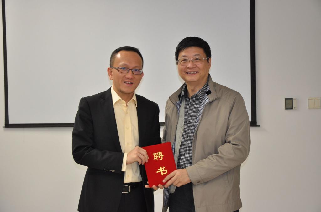 首批博雅课堂兼职教授。出席聘任仪式的有院长杨超、党委书记林贵平、行政副院长李广超、党委副书记高静、研究生指导主任蒋崇文。杨超院长为三位校友颁发了受聘证书。
