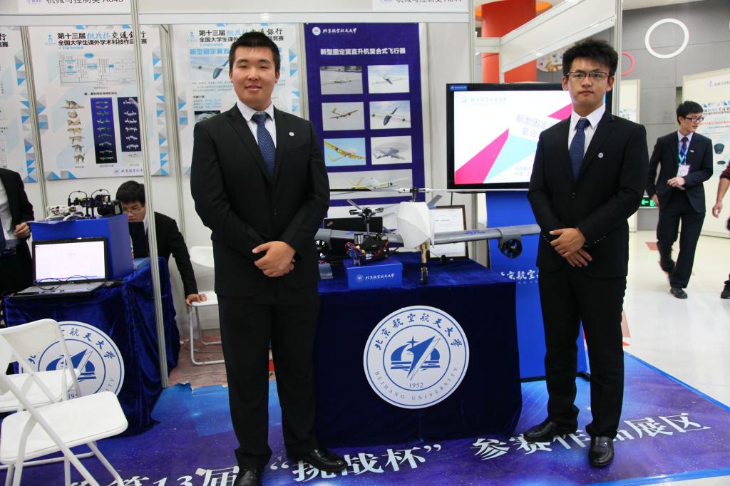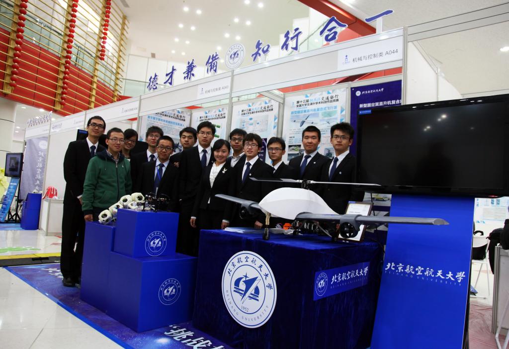 张啸迟、张良、章异嬴、石明轩、杨天浩等同学的参赛作品“新型固定翼直升机复合式飞行器”、以创新性的机翼布局与飞行原理赢得了评委们的认可,荣获竞赛一等奖。该项目来自于张啸迟同学的一个简单设想——如何才能让直升机飞得更快些,基于这该设想,团队从飞行原理分析、原型设计、样机制作、试飞调整等,直到最终试飞成功,经历了长达三年的科研攻关过程。在克服诸多困难的同时,也收获了诸多荣誉,先后获得首都“挑战杯”学生课外科技作品竞赛一等奖,博彩导航