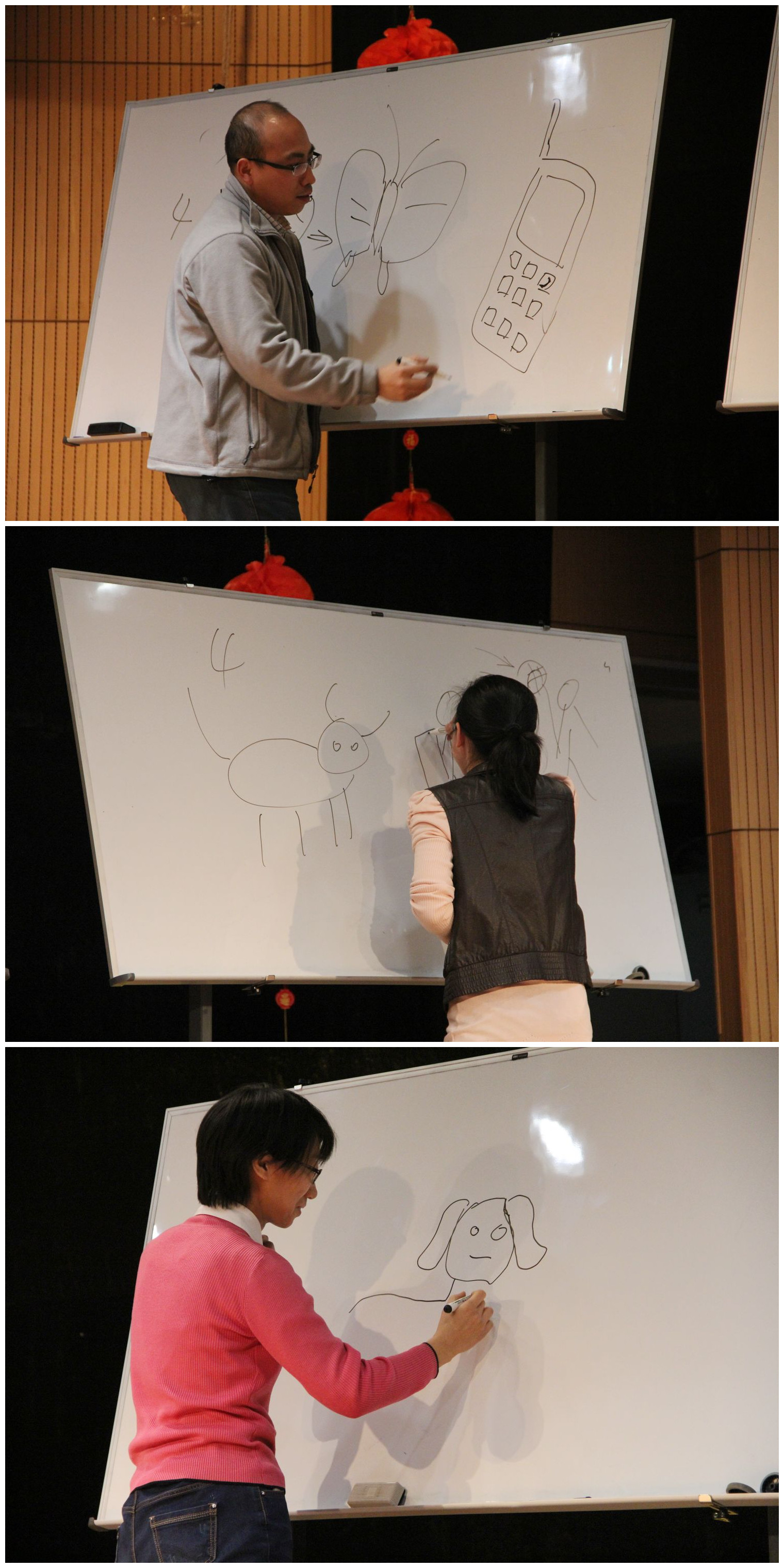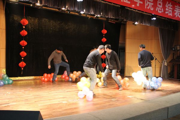 整场新春联欢会的更大亮点在于游戏环节,今年共设计了三个游戏,游戏互动性强,参与度高,可谓是集娱乐与专业、体力与脑力于一体的大型娱乐活动。在你画我猜游戏中,史京玲老师与蒋崇文老师凭借深厚的画功以及默契的配合赢得了比赛。知识竞猜游戏则不仅考验一个团队的智慧更考验着他们的协作,每个团队不仅需要在规定时间内答对相关题目,而且需要凭借各种奇形怪状的站姿将全队队员安全置身于一张小小的报纸上,而我们所出的题目全部出自于博彩导航