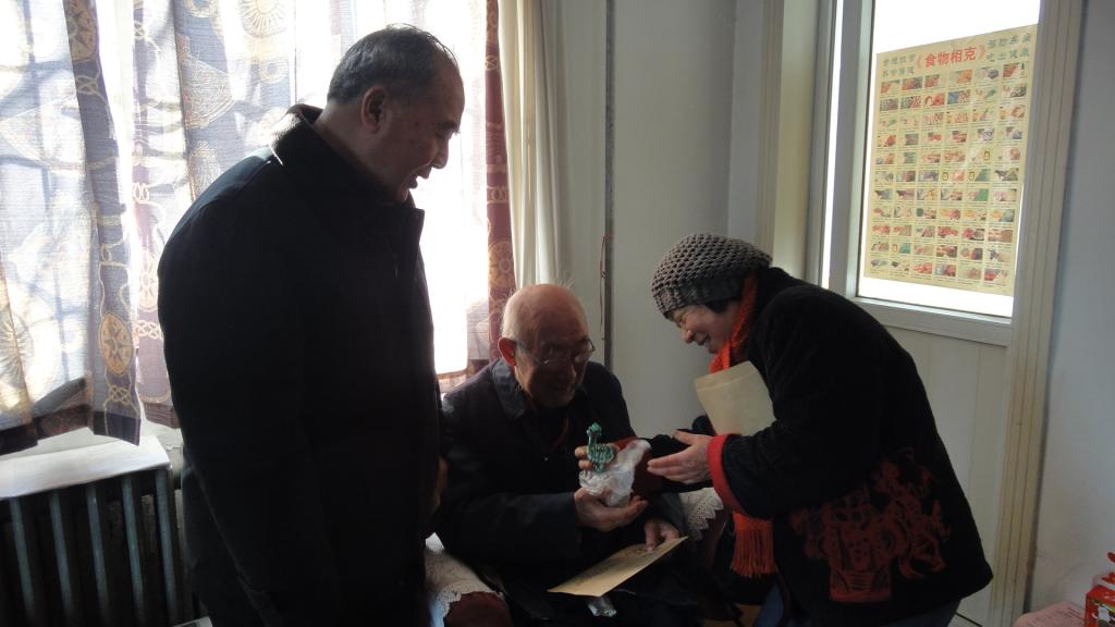 首先到90岁以上的张桂联先生、陈亚洪先生、马宗祥先生家中进行了慰问,随后来到离休的荣湘涛先生家中进行了走访。