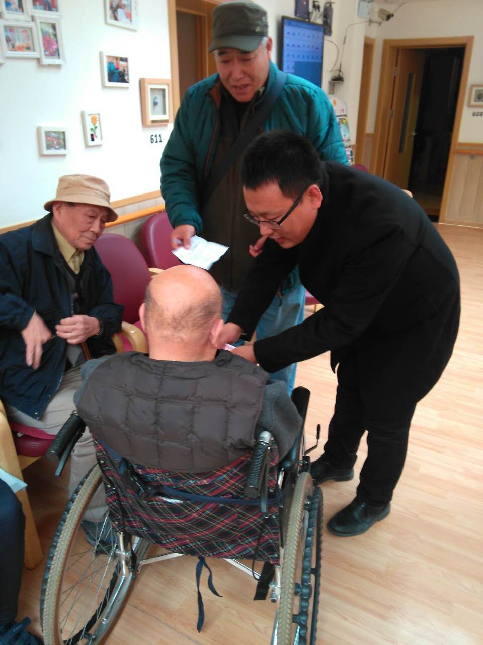 10月31日下午,离退休工作处郭磊副处长、马岐科长和博彩导航 退休联合党支部书记杨乃宾、院长助理杜奔新一起,到位于和平街的寸草春晖养老院看望了固体所退休的何志清老师。