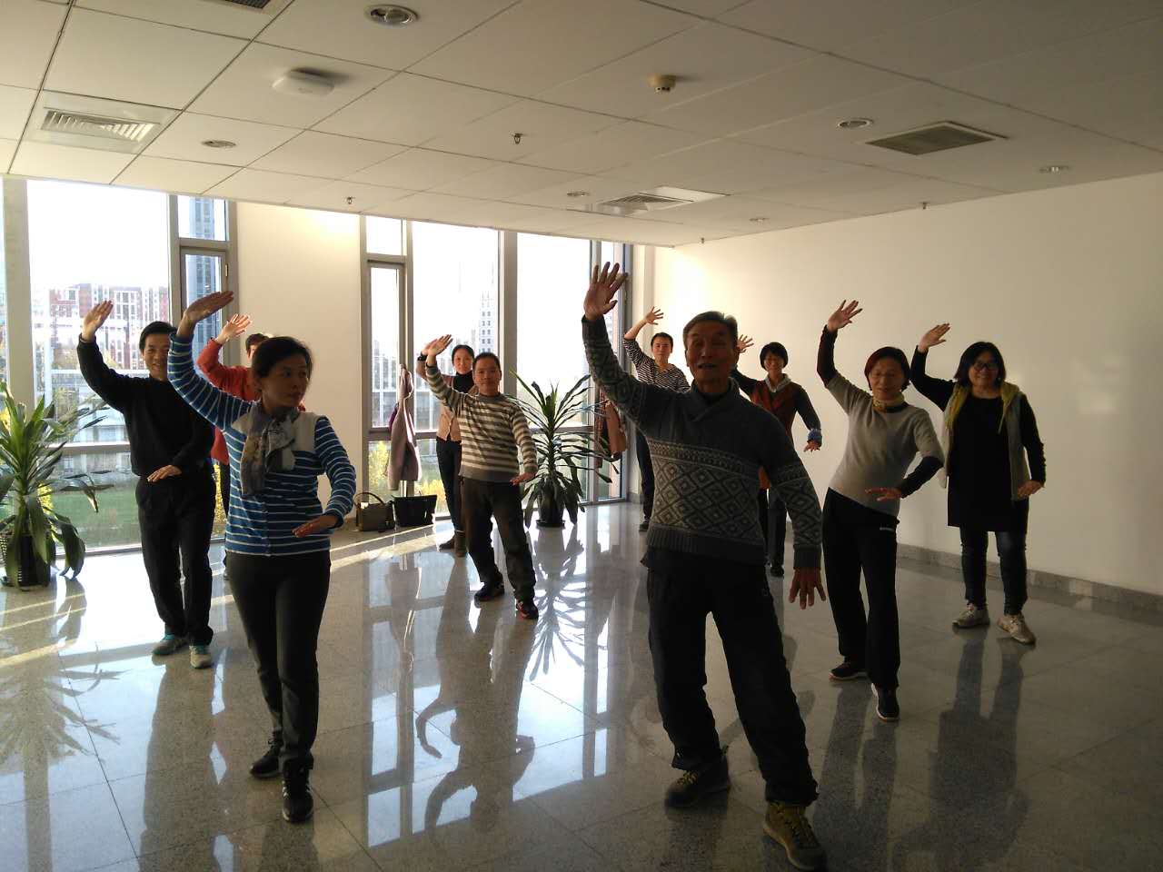 工会太极拳学习班在新主楼D座开班。邀请太极拳名家王幼复老师为大家教授、培训。