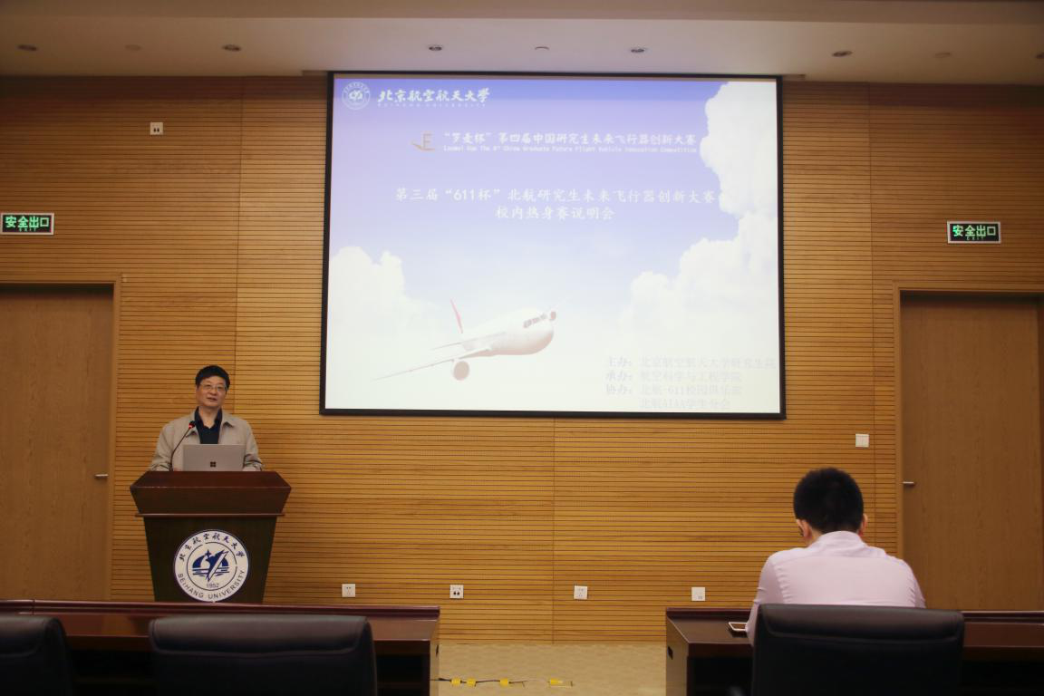 会上,杨超教授为大家介绍了大赛具体情况,包括比赛的举办地,组织主办方以及面向的对象,今年比赛的主题以及可选择的五个作品方向。杨超老师对本次大赛参赛队伍的设计要点提出了四个强调,包括未来飞行器的创新性、实验及数值仿真的科学论证、实际的可行性验证、对实际需求的考虑,明确讲解了设计的方向,而对参赛报告的说明上,杨老师也从三个方面提起参赛队员们注意,第一是要从报告的逻辑、版面等注意,这将直接影响到初赛的结果;第二是报告形式的注意,要善于运用图片,视频等形式来展现飞行器的研制设计过程;最后是对报名题目的注意,不要向一个方向上扎堆,要相互协调。此外,杨老师还鼓励队员们多交流,多讨论,跨专业,团队合作,让专家多“拍砖”,切忌闭门造车,最后,他表达了对大家衷心的祝愿,希望大家都能取得辉煌成果。