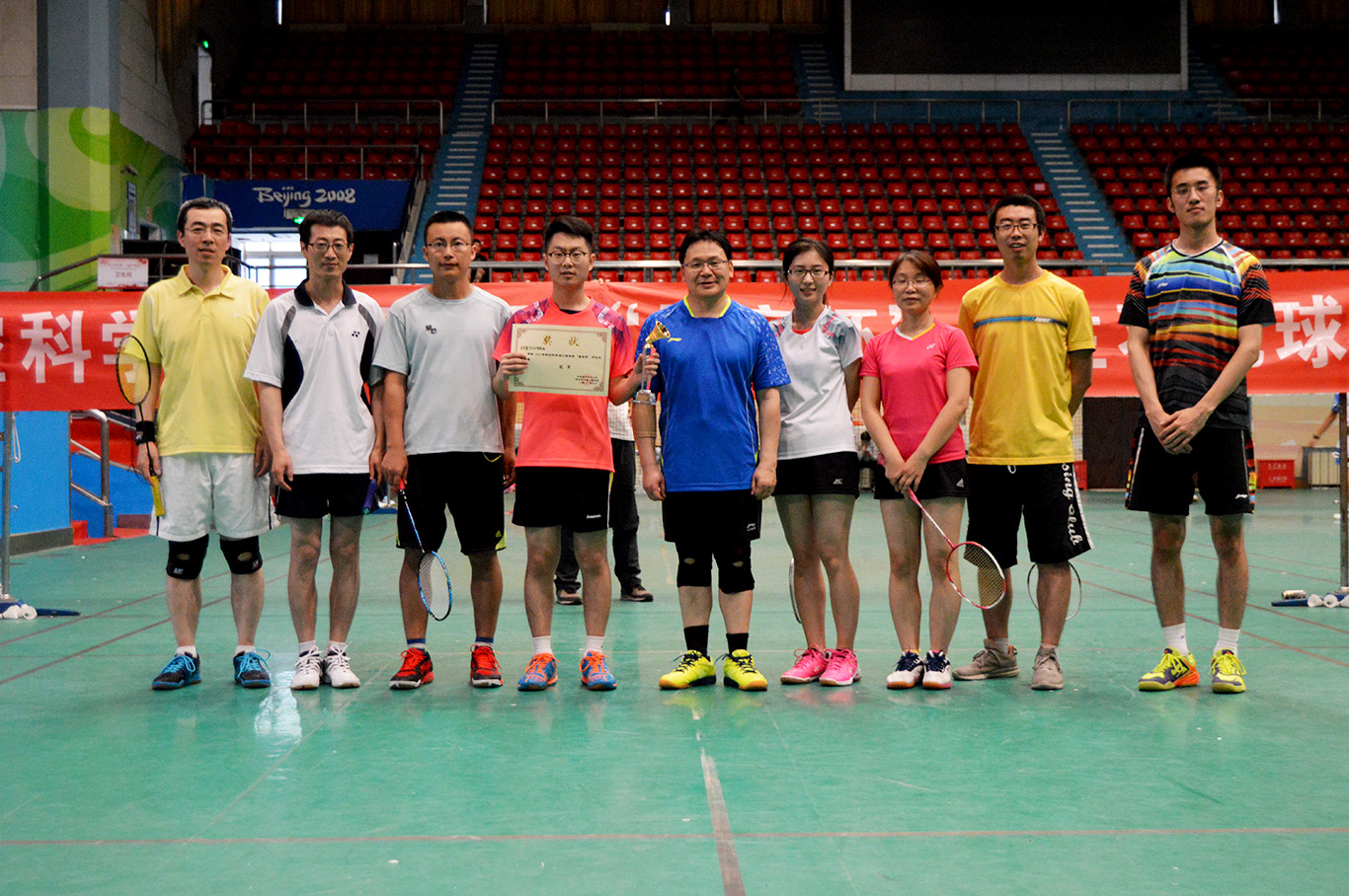 下午15点20分,在羽毛球开始自由下落的一瞬间,冠军之战正式打响。率先进行的是男双一的比赛。双方队员全神贯注,气势如虹,全部拿出百分之百的实力,场边围满的观众都屏气凝神,目不转睛的盯着场上队员的一举一动。经过双方激烈的角逐,第五馆/刘沛清课题组以5分领先率先拿下一局。第二局男双二的比赛刚开始,屈香菊/关志东组的队员接连出现失误,比分落后许多,所有人都为他们捏了一把汗。但是,经过几个回合的调整,他们的队员渐渐找到了状态,连续得分,从而将比分反超,并赢下一局,将总比分扳成一比一,比赛进入决胜局——混双比赛。起初,双方势均力敌,比分交替上涨,后来屈香菊/关志东组的两位队员越战越勇,丝毫不给对手以喘息的机会,最终以9分领先赢下比赛,获得冠军。而在3、4名决赛中,阎超课题组1队战胜林贵平课题组获得季军。