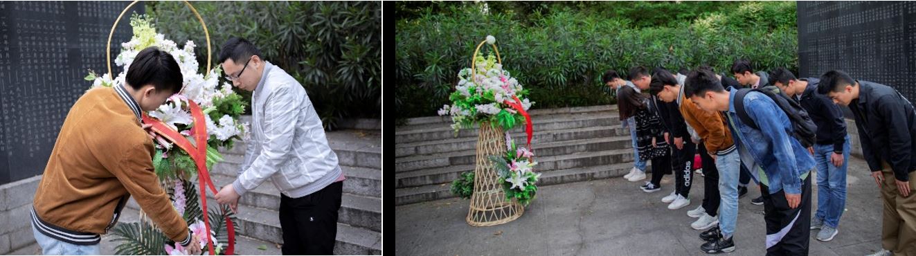 为梁慷荣烈士献花和鞠躬致礼