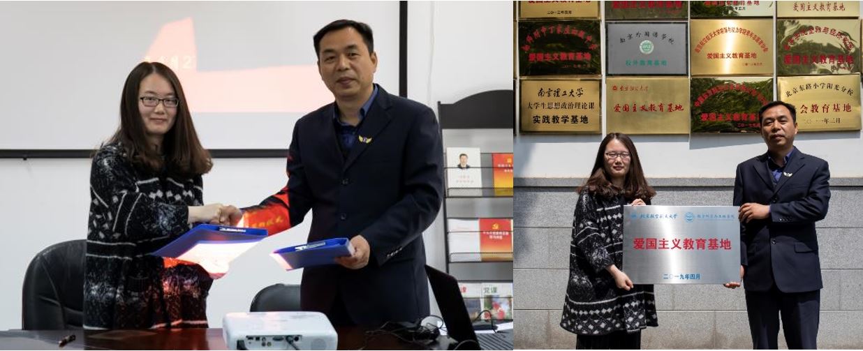 交流结束后,徐馆长与辅导员杨锐共同签署了《共建协议书》,并在南京抗日航空烈士纪念馆的挂牌陈列墙前共同挂上了博彩导航