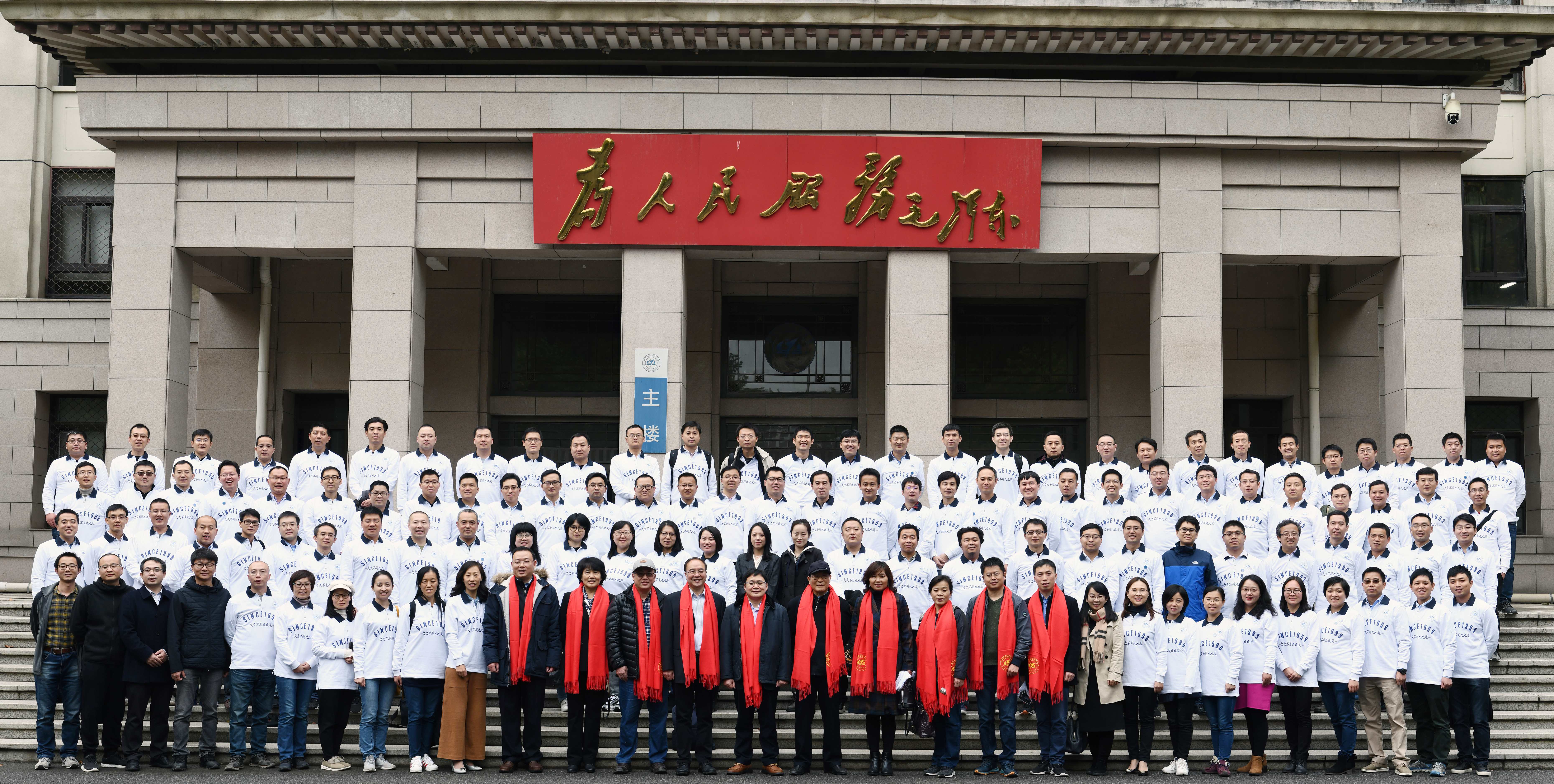 最后,参会领导老师与全体参会校友于主楼门前合影留念。