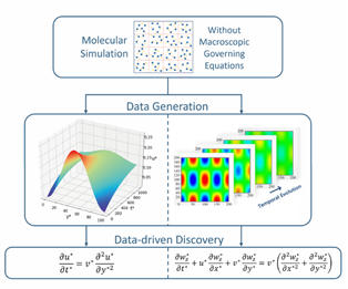 图1 基于分子模拟的数据驱动发现宏观控制方程。