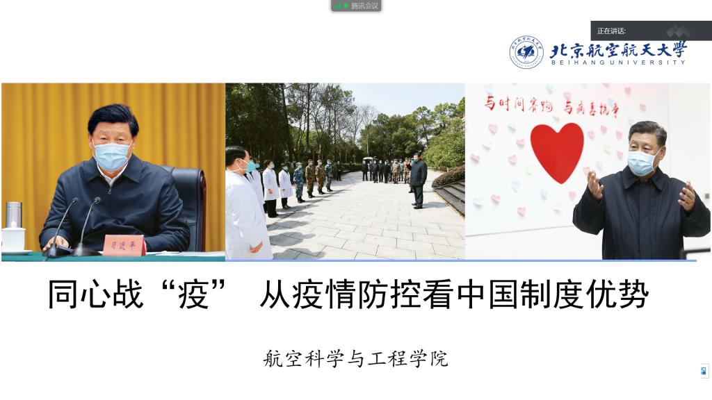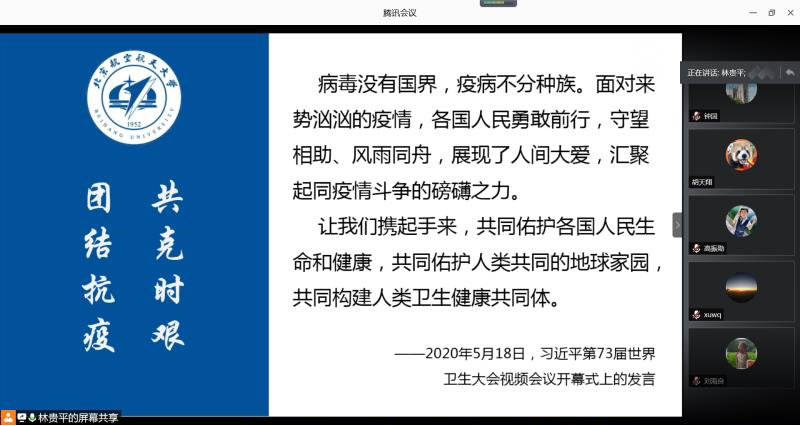 分党委书记林贵平以《同心战“疫” 从疫情防控看中国制度优势》为题,通过视频会议方式为全院教师党员上了一堂专题微党课。