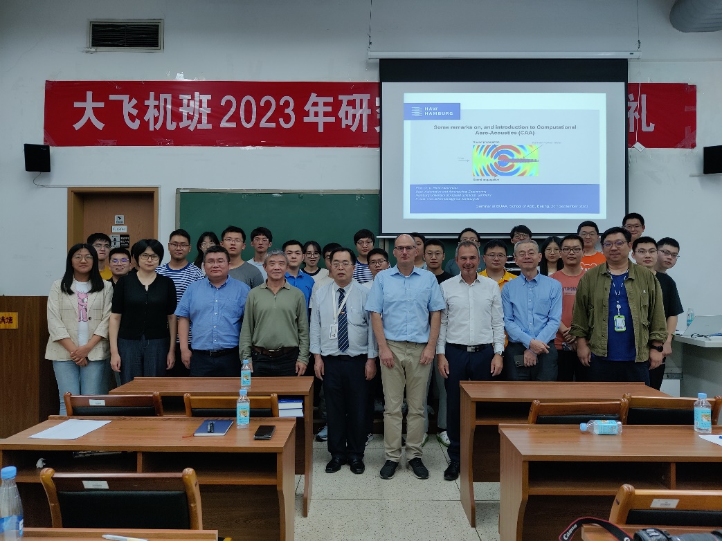 航空气动声学工信部重点实验室所做学术交流报告。Peter Brandstätt所长报告的题目为“Noise Control applied research projects at IBP”,Rinie A.D. Akkermans教授报告的题目为“Some remarks on, and introduction to Computational Aero-Acoustics (CAA)”。两个报告分别由屈秋林教授和胡天翔副教授主持,来自博彩导航