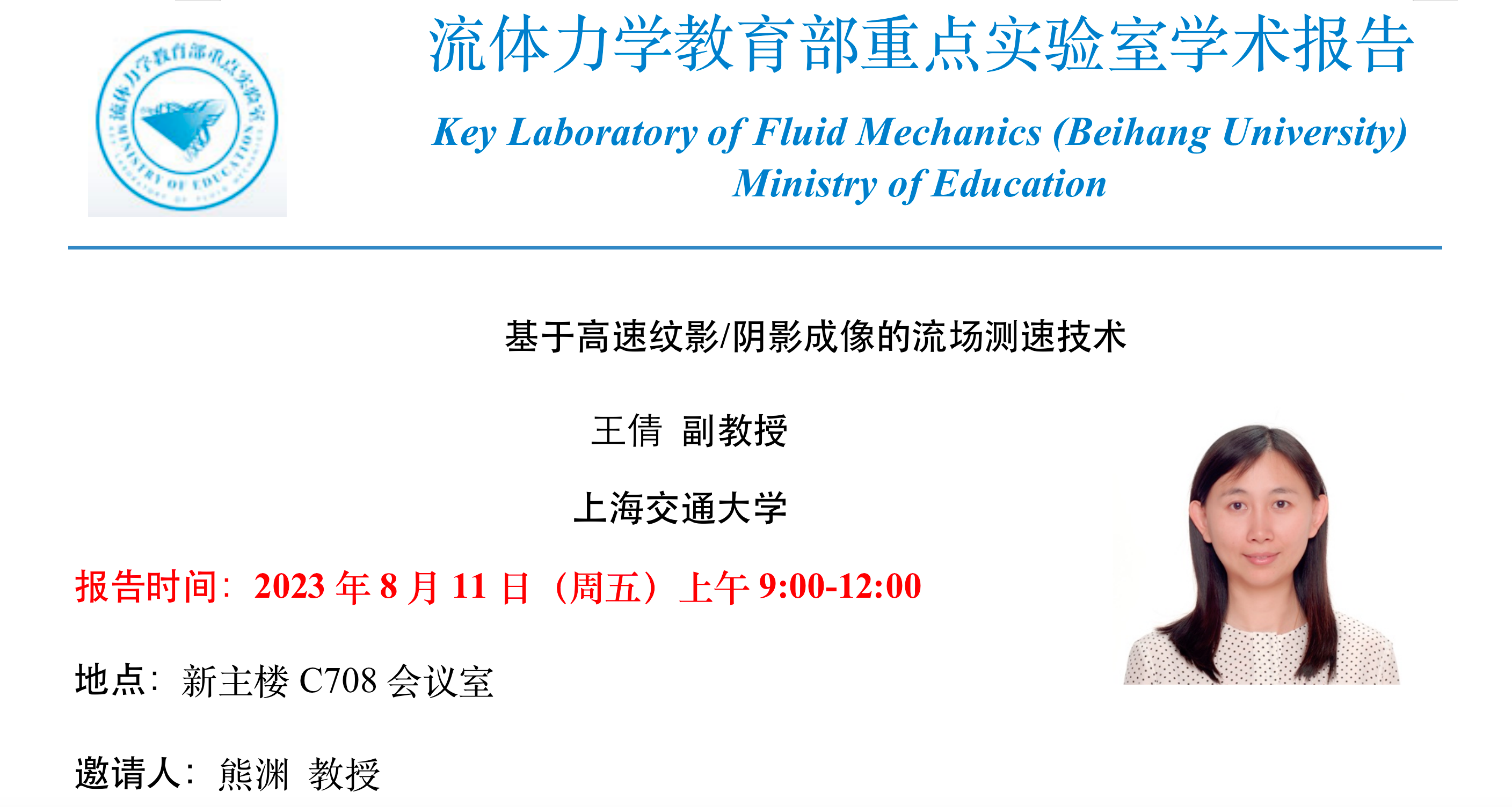 流体力学教育部重点实验室做学术交流报告,报告题目为“基于高速纹影/阴影成像的流场测速技术”。报告由熊渊教授主持,博彩导航