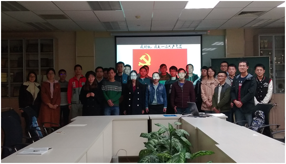 研究生联合党支部书记杨乔松带领全体党员同志重温入党誓词,进行了庄严的宣誓仪式,并奏唱国际歌。