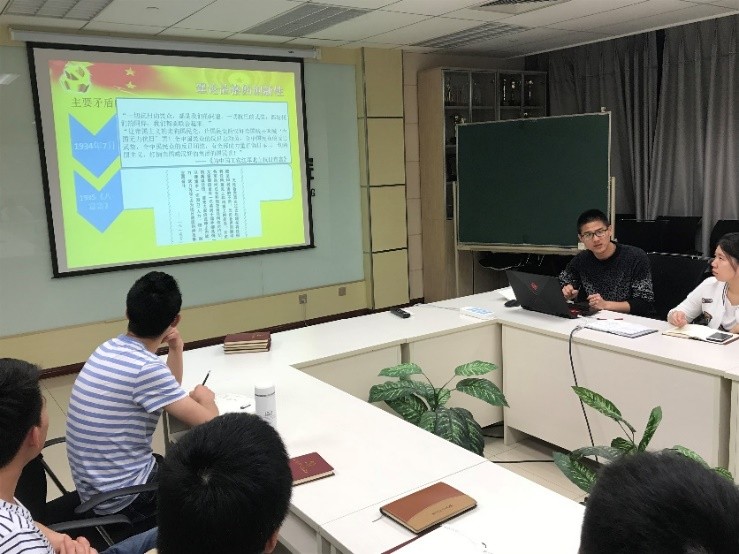 付子豪同志讲解了新思想的人民性,通过列举十八大以来党的具体实际行动,归纳出与人民性相关的两大举措:脱贫攻坚与反腐倡廉,生动证明了习近平新时代中国特色社会主义思想就是以人为本的思想,是人民可以信任的思想。