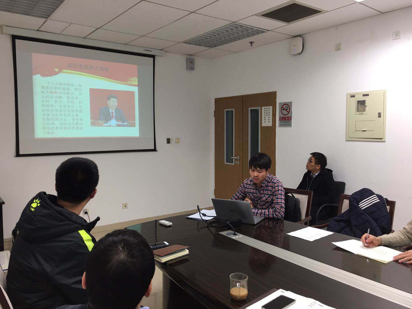 接着,由组织委员兼纪律检查专员胡万林同志对过去一年支部的思想工作进行了自我检查。他主要提到了支部很多的党员同志在思想上没有达到一名合格党员应有的水平以及在支部工作中没能履行党员的义务的问题,同时,也对新学期的支部发展提出了自我要求。