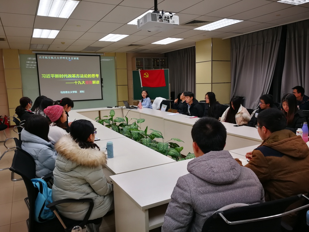 研究生校级宣讲团郑钊学姐为我们带来的,名为《习近平新时代改革方法论的思考》的精彩宣讲。在支部成员到齐后,郑钊学姐便开始了讲解。全程50分钟左右的讲解,我仔细听取,积极参与并与大家一起交流学习,真的受益匪浅。其中郑钊学姐提到的好几个要点,我印象特别深刻。