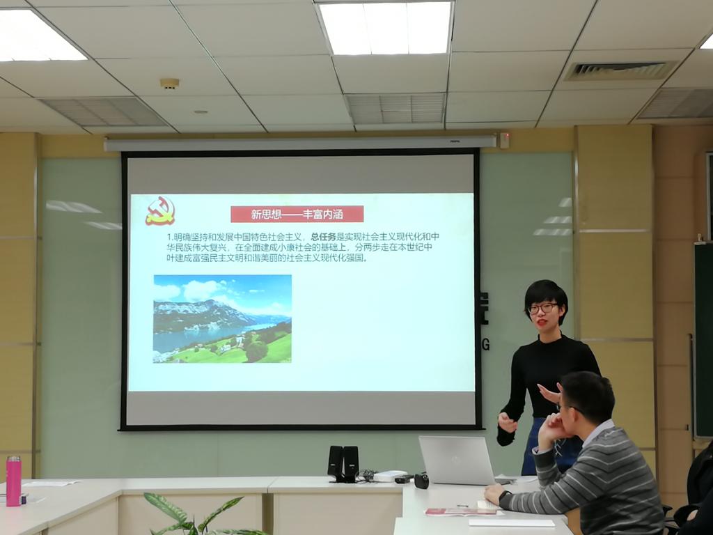 研究生宣讲团的王雪晴同志在支部学习会上作了题为“思想引领,筑梦青春——习近平新时代中国特色社会主义思想解读”的报告。本次会议应到20人,实到20人。