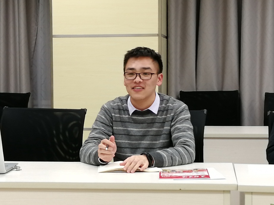 会议在嘹亮的国际歌声中开始,王雪晴首先概述了十九大的议程和大会相关的主要文件,并对一些十分重要但之前没有引起同学们足够重视的细节进行了解读。王雪晴紧密围绕十九大报告内容,结合过去几代人和自身的亲身经历,说明了建国以来中国走过的历史变革以及社会主要矛盾变化历程,加深了同学们对十九大开幕会上习近平总书记提出的“中国特色社会主义进入新时代,我国社会主要矛盾已经转化为人民日益增长的美好生活需要和不平衡不充分的发展之间的矛盾”的理解,让同学们更加明确了“五位一体”的中国特色社会主义事业的总体布局,和“四个全面”战略布局的重要意义。