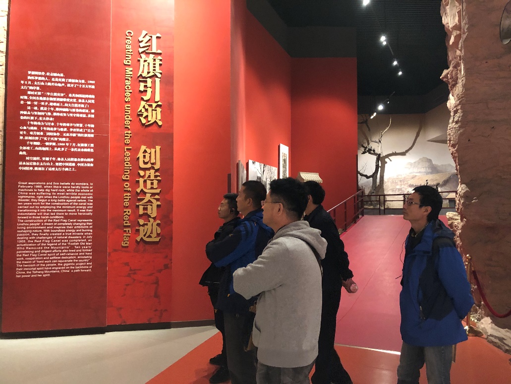 10月26日下午支部成员乘坐高铁抵达安阳后,便乘车来到林县参观红旗渠。周恩来总理说过:“新中国有两大奇迹,一个是南京长江大桥,一个是林县红旗渠”。红旗渠是1960年2月,在林县委书记杨贵的带领下,为根本解决林县干旱问题,把山西的漳河水引入到河南林县,勤劳勇敢的人民苦战10个春秋,仅仅靠着一锤、一铲、两只手,在太行山悬崖峭壁上修成的全长1500公里的人工天河。习近平同志指出:“红旗渠精神是我们党的性质和宗旨的集中体现,历久弥新,永远不会过时”。支部成员通过参观纪念馆,实地察看红旗渠,亲身感受了当年林县人民“誓把河山重安排”的英雄气概。